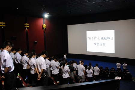 8月26日上午10点,成都区域影城消防安全知识竞赛,在成都影城SM店举行。这次活动也是“8.28万达耻辱日悼念活动”的一部分。