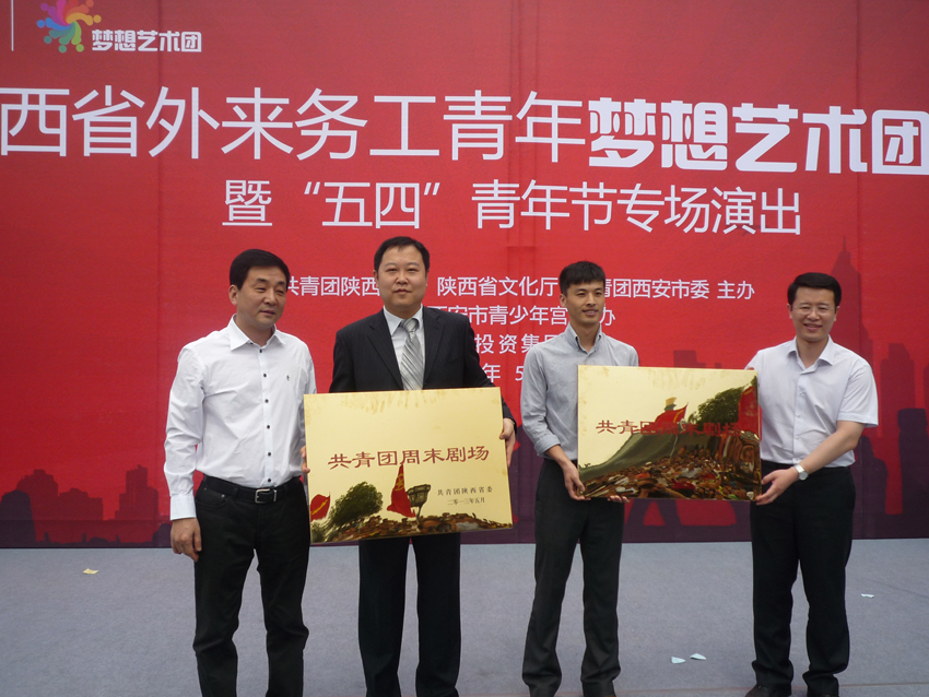 2013年5月4日西安影城民乐广场店携手共青团陕西省委关爱外来务工青年公益活动,影城为这些外来务工青年提供了“共青团周末剧场”,每周一次的免费观影活动。共青团陕西省委授予了西安民乐广场店“共青团周末剧场关爱外来务工青年基地”称号,西安万达影城致力于积极开展面向外来务工人员的公益性文化活动,倡导全社会关心、关爱外来务工人员,丰富他们的精神文化生活。