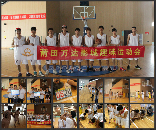 2013年7月18日莆田万达电影城首届趣味运动会在莆田市体育馆拉开了帷幕,在影城经理的带领下同仁们踊跃参加,整场比赛妙趣横生,笑声、加油声、呐喊声此起彼伏。趣味运动会在倡导团队精神、协作精神、拼搏精神等的原则设立比赛项目,主要有乒乓球接力,二人三组,篮球赛等5个项目,一共有3支队伍参加此次比赛,人数达40多人。