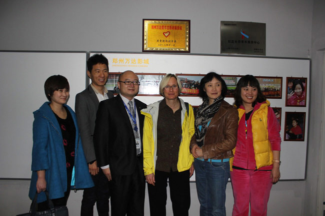 11月14日,联合国儿童基金会亚太区专家劳瑞一行来到郑州中原万达影城考察红蓝丝带中心,对影城的公益活动给予高度评价。郑州中原万达影城自2011年开业以来,一直致力于儿童公益事业,定期组织儿童观影暨“小眼睛、大世界”活动,通过电影让儿童走入梦幻的世界,展开奇妙之旅。同时,影城与郑州市的农民工子弟学校进行合作,针对农民工子弟组织“大手拉小手”公益活动,送去学习用品,并在儿童节时进行联欢互动,持续的活动受到了社会广泛关注。