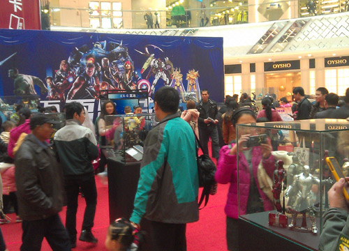 12月1日,郑州二七万达影城举办“万达电影周”大型电影模型展览,并推出扫“微”有礼等现场活动。众多电影模型亮相二七万达广场,终结者、钢铁侠、蜘蛛侠、加勒比海盗杰克船长、猫女等一个个大家耳熟能详的电影人物,栩栩如生地摆放在展厅内,吸引影迷们的眼球。活动现场还有大量的动漫人物,如高达、擎天柱、圣斗士、EVA、初音未来等展出。本次展出的电影模型,包括道具造型、生物道具制作、盔甲武器制作、大型场景和服装制作等,多达数百件,还有依照实际电影细节规格按真人比例大小制作的钢铁侠。通过此次活动,影城客流得到大幅度提升,经过两天活动和两部IMAX大片,二七万达影城票房跃居郑州地区第一。