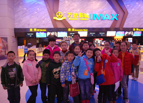 上午10点整,外教Fred准时在芜湖万达影城售票窗口,办起了售票员的角色,孩子们有序的排好队伍,和“售票员”进行英语对话购买电影票。购票结束后工作人员用英文通知小朋友们进入影厅,小朋友们一一坐好后,外教Fred一边做游戏一边潜移默化的教授小朋友们如何学习英语、使用英语。随后外教Fred邀请小朋友们集体进入全英语的观影模式中,11点半后,这场别开生面的观影活动结束了,很多小朋友意犹未尽,甚至现场用英语讨论起了电影情节,家长们纷纷表示,感谢万达影城为小朋友们提供了一个学习和锻炼的机会。