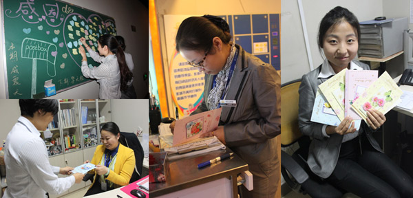 11月28日,感恩节当天,洛阳万达影城举办了“感恩在行动,贺卡递真情”活动,影城的全体员工参与了此次活动,有的通过感恩墙寄语来表达对同事们的感恩之情,有的则亲自写贺卡表达对同事的浓浓感激和祝福之情。通过此次活动,使员工能够感受到来自同事的感谢和鼓励,更加拉近了员工之间的心理距离,使员工之间建立了的深厚牢固的情谊。