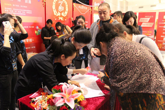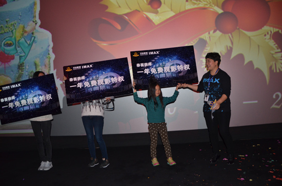 借万达影城3周年店庆之际,为IMAX首席体验官颁发荣誉证书及勋章。IMAX首席体验官是全国万达影城举办百日观影节其中的一项活动,将全国评选10名万达IMAX首席体验官出席《寻龙诀》首映礼,还可与明星同台合影。现场会抽出6名体验官参加美国IMAX寻根之旅。