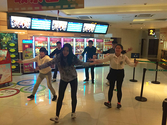 18:30--20:30 在观影高峰期,在影城大堂组织小伙伴们快闪活动,吸引观众眼球,参与到店庆活动中来。