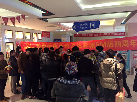 2016年1月18日,苏州万达影城SM广场店迎来了四周岁生日,为感谢广大影迷及会员一直以来对影城的支持与厚爱,影城组织策划包括微信送优惠、专场观影、有奖竞答、我划你猜、大堂快闪、集体庆生等一系列活动,与观众积极互动。