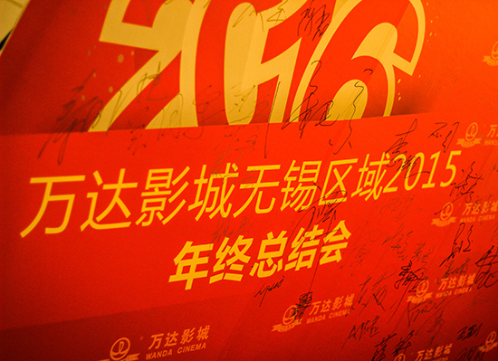 万达影城无锡区域2015年年终总结及表彰大会于1月19日举行。参会的人员来自无锡区域七家影城的负责人、各部门主管及安保公司、保洁公司的代表,共计80余人。