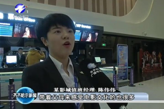 正是因为齐齐哈尔万达影城的全体员工不懈的努力才会得到齐齐哈尔广大市民的认可,才会让各种媒体注意到万达影城的亮点。2月16日齐齐哈尔电视台掌上鹤城对影院春节档期进行播报,齐齐哈尔电视台对齐齐哈尔万达影城春节档期的优惠信息,重点影片,排映时间进行了播报,不仅给予齐齐哈尔万达影城好评,也是对全国万达影城由衷的赞叹。顾客:齐齐哈尔万达影城,环境舒适,设施完善,服务一流,无论领导至员工每个人脸上展现的都是乐于助人的神态,这样的影城有什么理由不被市民所喜爱呢?