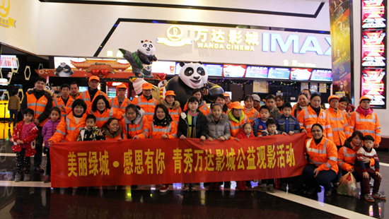 2016年2月27日,南宁万达影城联合南宁市环卫站和街道办人员,组织开展关爱环卫工人及其子女《功夫熊猫3》公益观影会,为日常工作在街道一线的环卫工人创造与子女共度欢乐时光的机会。