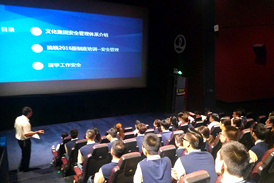 8月17日早8点整,大同万达影城8月安全培训会在华林新天地店3号放映厅举行。本次培训的内容是学习文化集团SHE安全管理体系和万达院线2016版安全管理制度,以及夏季工作安全知识;开展建筑实体与设施类安全专项应急预案的模拟演练。