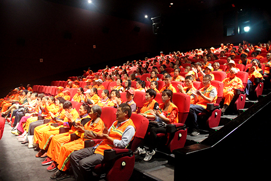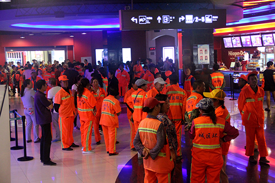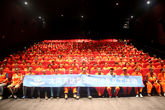 环卫工人日复一日、年复一年默默工作在保洁一线,用辛勤的汗水换来城市的清洁和美丽,然而,却很少有机会走进电影院。为了感谢他们为城市的付出,大同万达影城安排了一个厅,邀请300名环卫工人免费观影。下午2时许,环卫工人们陆续进场,他们当中大部分人都是第一次来影院观看电影。