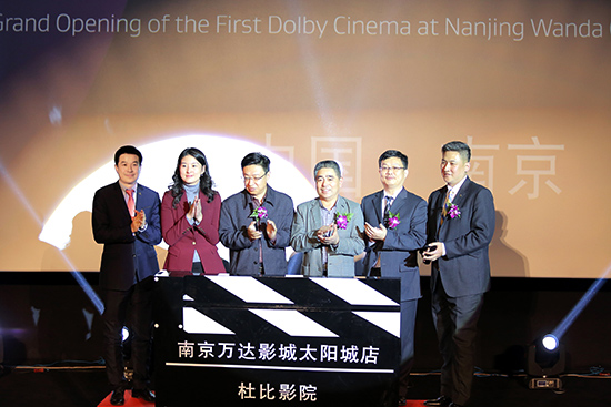 嘉宾为南京万达影城太阳城店杜比影院启幕杜比影院(Dolby Cinema)结合杜比视界(Dolby Vision™)和杜比全景声(Dolby Atmos®),为电影观众带来高品质的影院观影体验,将绚丽的影像和声音技术与匠心独蕴的细致设计相结合,让每次观影都成为令人全方位心醉神迷的电影盛宴。