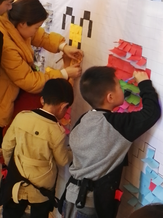 在体验了影城的各个岗位后,小朋友们发挥各自的才能,用贴纸在墙上贴出了乐高大电影里的人物,并获得了现场观看《乐高蝙蝠侠大电影》的奖励。