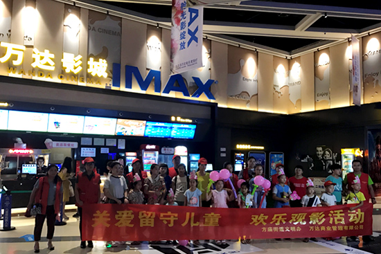 8月2日合肥瑶海万达影城联合万达广场商管和瑶海区方庙街道,组织了一场“关爱留守儿童,免费观影”的公益活动。