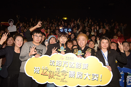 12月8日19:30沈阳万达影城铁西店《这就是命》见面会,潘斌龙、金圣柱莅临现场。未见其人,先闻其声,现场尖叫不断。两位嘉宾刚入影厅,便有狂热粉丝大喊;“大潘,我要跟你生个猴子!”引来现场观众及两位嘉宾的欢笑。见面会从轻松的氛围开始,说说笑笑,并讲到了金圣柱为了拍戏苦学汉语的经历。当有金圣柱的粉丝用韩语向金圣柱问候时,金圣柱停顿三秒,用中文说句“谢谢”,全场停顿三秒又是一阵大笑。