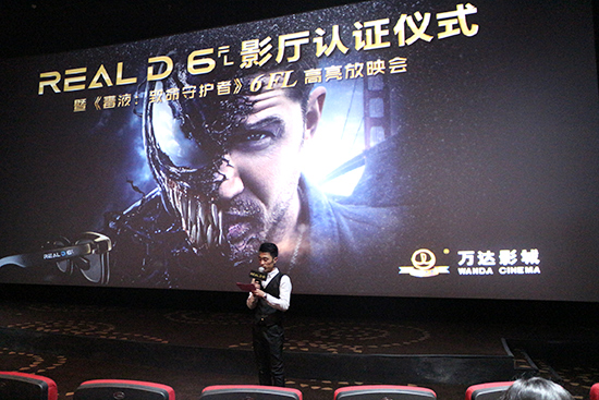 11月11日下午,沈阳区域锦州万达广场店成功举办RealD 6FL影厅认证仪式 暨 《毒液:致命守护者》6FL高亮放映会。 此次仪式共邀请一百余位影迷和客户团体参加,锦州万达广场店2号厅也成为了锦州首个拥有6FL认证的影厅,此次活动宣告从此锦州也有了自己的RealD 6FL影厅。