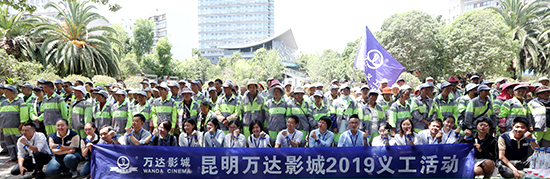 5月21日,万达电影昆明区域联合社区党支部在昆明市中心胜利广场开展“高温酷暑送清凉-致敬环卫工人”服务活动。