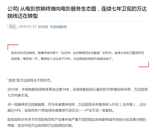 《中国电影报》:2016年“买买买“的标准是什么,什么样的企业能进入万达的收购视野?