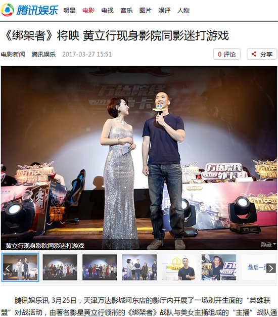 3月25日,天津万达影城河东店的影厅内开展了一场别开生面的“英雄联盟”对战活动,由著名影星黄立行领衔的《绑架者》战队与美女主播组成的“主播”战队通过一场精彩的友谊赛,为现场数百名英雄联盟游戏粉丝及影迷带来了一场难忘的游戏体验。
