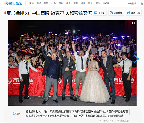 6月13日,年度最受瞩目的超级IP续作《变形金刚5:最后的骑士》在广州举办全球首映礼暨《变形金刚》系列电影十周年盛典,并在广州万达影城白云店独家举办盛大的首映观影礼。刚刚完成更名的万达电影宣布成为《变形金刚5》”中国首席营销推广伙伴“,并独家承办首映观影活动。数百名全国各地征集而来的“变迷“不仅有幸提前十天观赏了影片,导演迈克尔·贝携影片主创更是亲临影城与影迷互动交流,堪称年度现象级电影盛事。