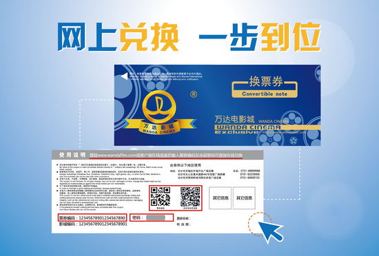 新版团体券的最大优势是支持万达电影网、万达电影APP、移动网站直接在线选座兑换,无需排队,方便快捷一步到位。票券的背面印有二维码,扫描票券编码及输入密码可直接兑换,同时还可通过二维码获取兑换使用流程。