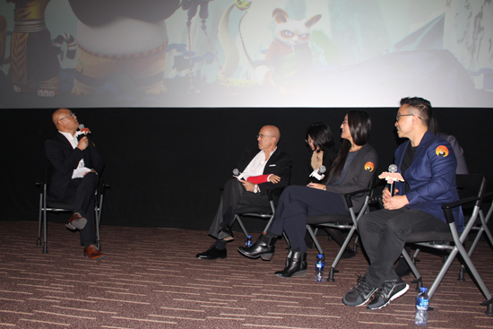 近日,万达电影院线股份有限公司(简称“万达院线”,002739.SZ)邀请《功夫熊猫3》主创亮相万达影城CBD店,举办万达电影公开课。电影《功夫熊猫3》的主创梦工厂动画CEO 杰弗瑞·卡森伯格(Jeffrey Katzenberg)、余仁英导演(Jennifer)及梦工场动画“史莱克之父”、电影《捉妖记》导演许诚毅均莅临现场。
